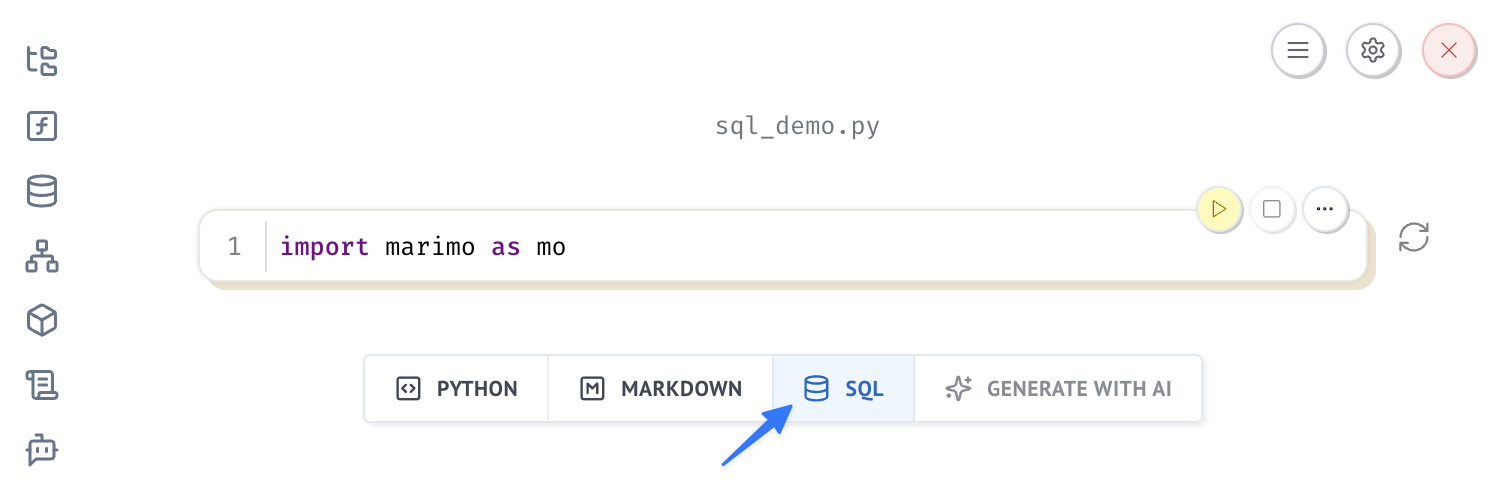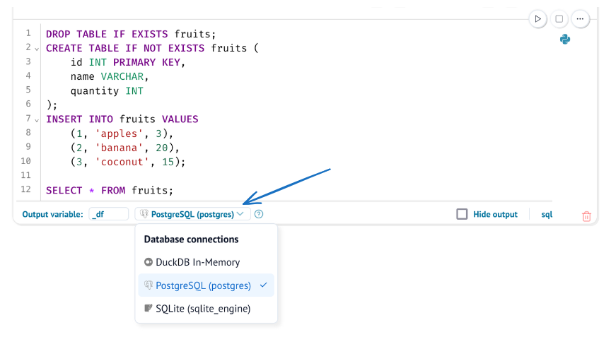 marimo will auto-discover the engine and let you select it in the SQL cell's connection dropdown.